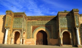 We departure from Fes at around 10 am for a 1 hour's drive west to the Imperial city of Meknes. Driving across the plain you will see vast acreages of vineyards which produce good quality wine, much of which is exported to France. You will have up to three hours in Meknes to explore the town including the expansive souks, the fascinating historical sites and to take lunch. Moulay Ismail made Meknes the capital city of Morocco during his reign around 1700; his mausoleum and the Rouah, his stables for over 12,000 horses, together with Place el-