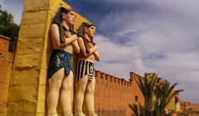 Today we continue our desert trip from Marrakech by riding camels back to Merzouga. From here, we will journey through the Draa valley to Ouarzazate, where we will view Kasbah Taourirt, which belonged to the Glaoui family, Marrakech's Pashas. Then we go to Kasbah Ait Benhaddou, Morocco's most famous Kasbah and a UNESCO World Heritage site. This kasbah has also used as the backdrop for various Hollywood films. We then return to Ouarzazate and spend the night in a tiny riad.