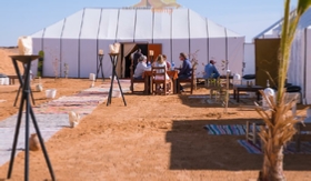 Our Morocco Tour continues today, and we will tour the desert. We ride camels to the highest dunes in Morocco, Erg Chebbi. We'll also stop by a Berber household and a Khamlia village to listen to Gnawa music. In the neighboring area, we will see Berber nomads and a palm tree oasis. We ride camels through the sand dunes to reach desert camp after lunch at Merzouga. We'll spend the night in a desert Sahara tent, listening to Berber drum music in the heart of the Sahara. You will also enjoy the desert sunset and dawn. We spend the night in desert tents after a typical Moroccan meal.